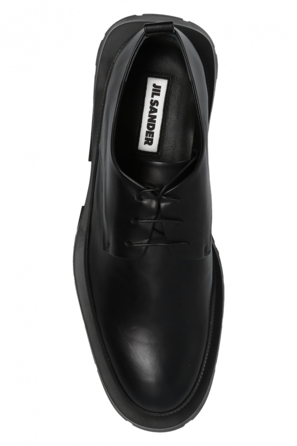 Black boots from Jil Sander. Crafted from leather, this lade-up pair rests on a black rubber sole.