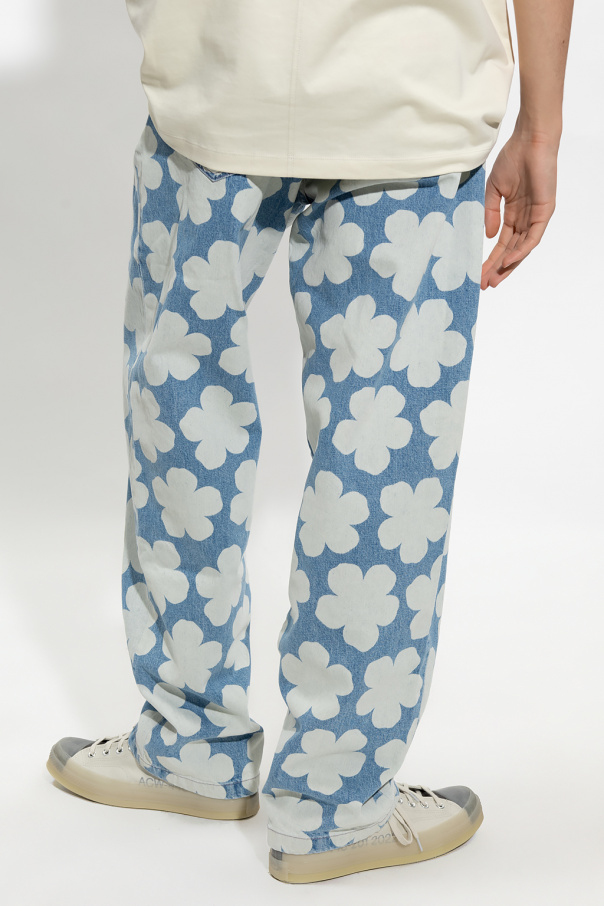Blue jeans from Kenzo. Crafted from cotton, this pair falls with wide legs and features a floral pattern, a zip fly with a button and classic five pockets.