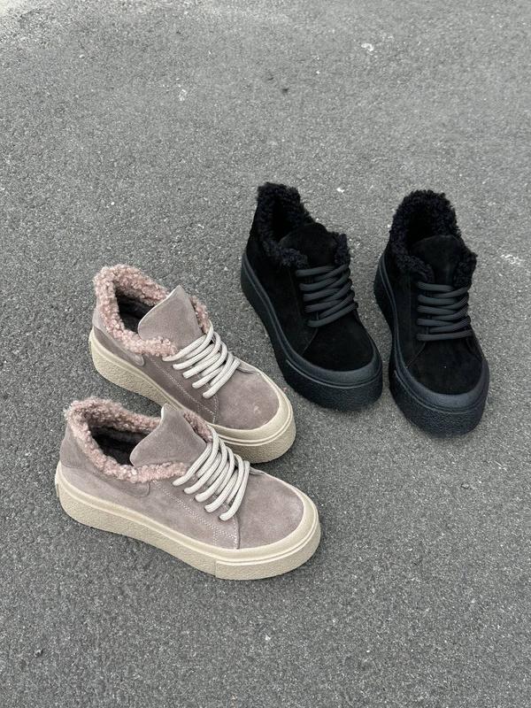Зроблено в Україні?:Виробництво ,Матеріал:Замша ,Висота виробу:Низькі ,Застібка:Шнурівка ,Сезон:Зима ,Принт:Без принту ,Тип підошви:Платформа ,Довжина устілки:25,5 см , 25 см , 24,5 см , 23,5 см , 24 см , 26 см , 26,5 см , - Shipping