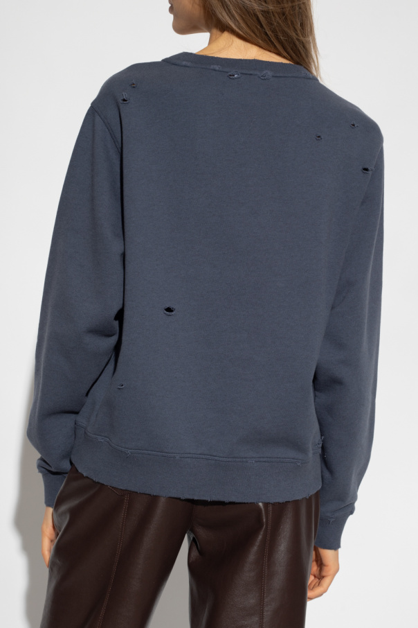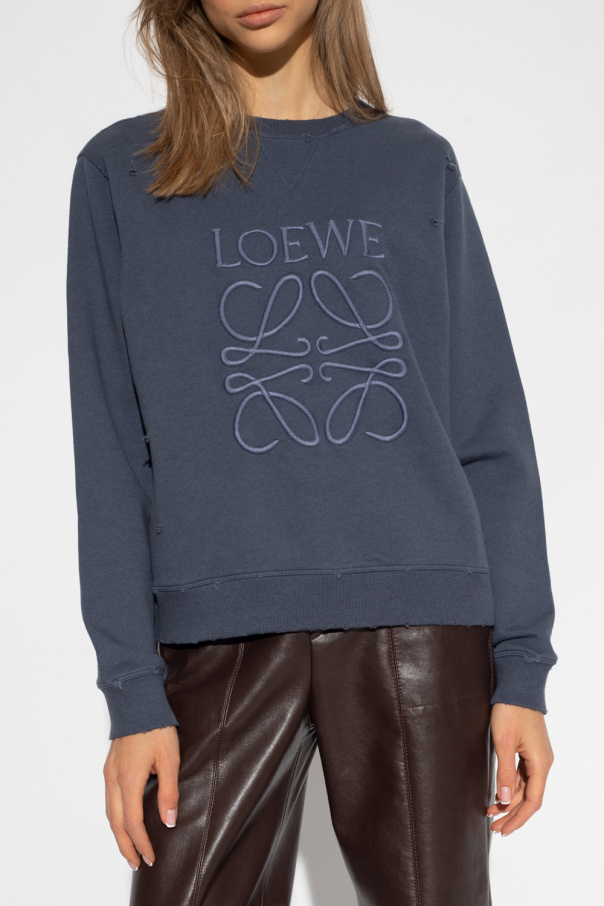 Dark blue crewneck sweatshirt with a vintage effect from Loewe. Made of cotton, this long sleeve design features a logo embroidery and ribbed trims at the neck, hem and cuffs.