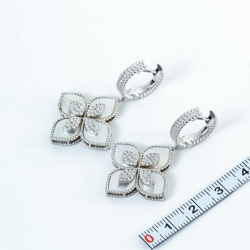 Жіночі срібні сережки зі вставками білого перламутра і фіанітів