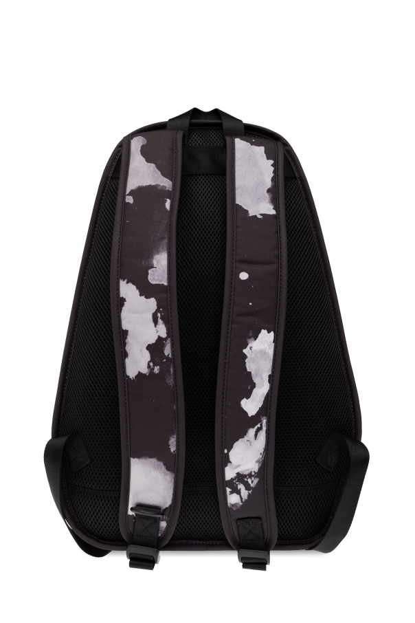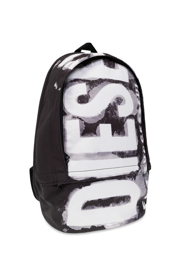 Black and white ‘RAVE’ backpack from Diesel. Made of fabric, this model features a two-way zip, logo detail, front zip pocket, half-round handle, adjustable shoulder straps and one internal compartment with one zip pocket and one slip pocket.