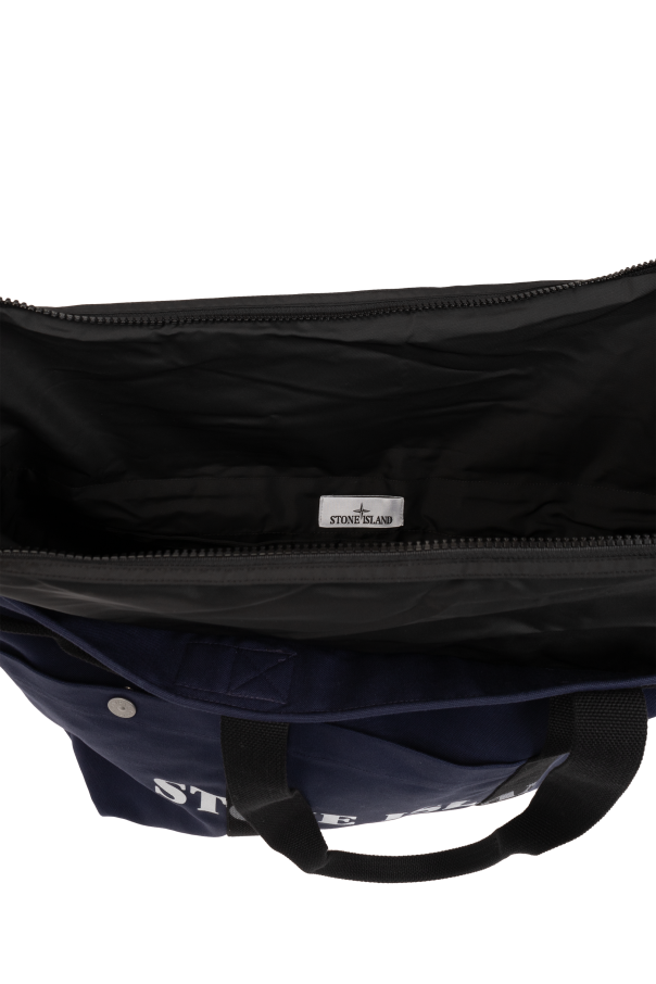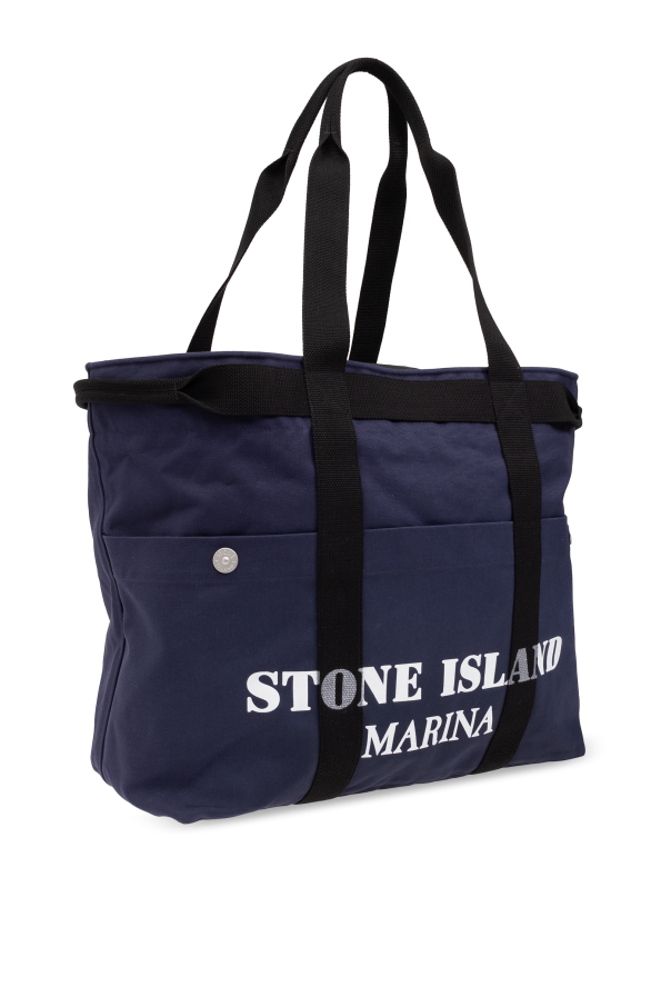 Introducing the quintessence of sophistication and functionality - the 'Marina' Shopper Bag by the renowned Stone Island. Crafted with impeccable precision, this navy blue bag is a testament to the brand's commitment to high-quality materials and timeless design. The durable cotton fabric ensures longevity, while the prominent horizontal lines accentuate its rectangular silhouette, offering a modern twist to its classic aesthetic. The bag's front is elegantly adorned with the white 'Marina' collection logo, subtly signifying its prestigious origin. Black, long straps provide comfortable shoulder carriage, enhancing its practicality. Safety of belongings is paramount, addressed by the secure zipper closure. Inside, the spacious compartment lined with black, offers an orderly storage solution, including an internal zippered pocket for smaller essentials. The bag's versatility is further amplified by side snap buttons, allowing width adjustment or serving as a decorative element. This Stone Island shopper bag is not just a carryall; it's a statement of style and functionality, designed to complement a myriad of outfits, making it an indispensable accessory for the discerning individual. Why Purchase This Product? Exquisite craftsmanship from Stone Island's 'Marina' collection. Durable and stylish navy blue cotton construction. Enhanced security with a zippered closure. Ample storage, including an organized interior with additional pockets. Versatile design with adjustable width for varying needs.