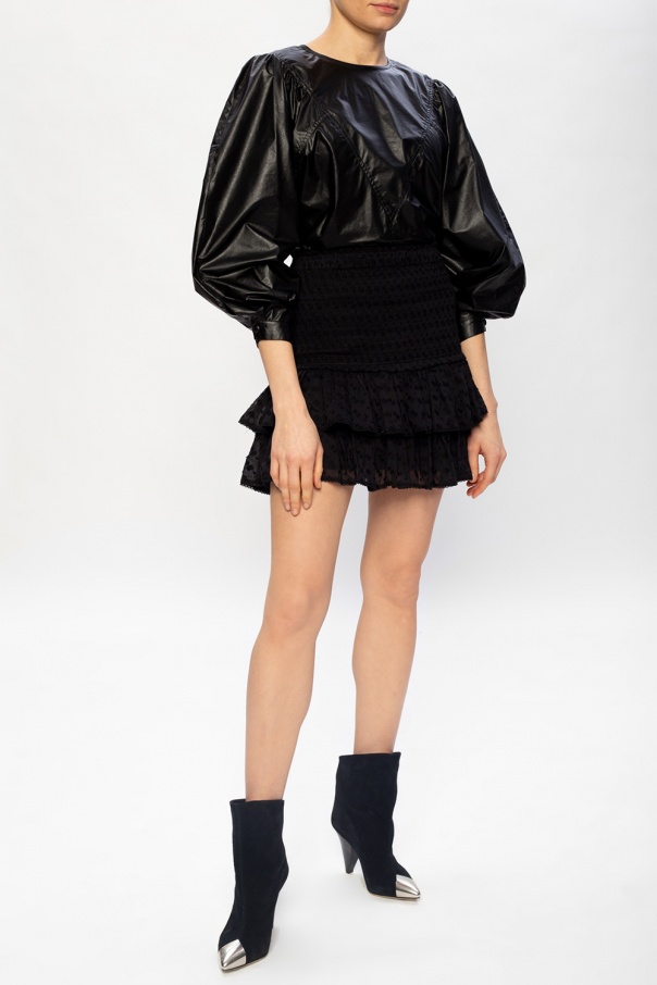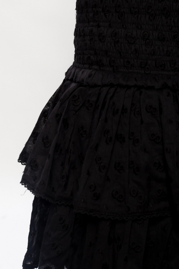 Black skirt from Isabel Marant Étoile. Made of cotton, this design features an elastic waistband, embroidered floral print and ruffles.