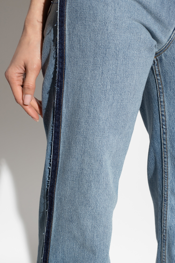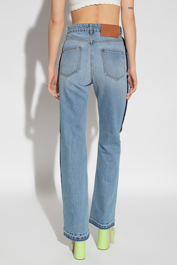 Blue jeans from Victoria Beckham. Crafted with a vintage effect, this pair falls with straight legs and features a high-rise waist, a zip fly with a button and classic five pockets.