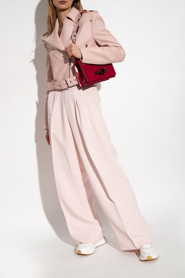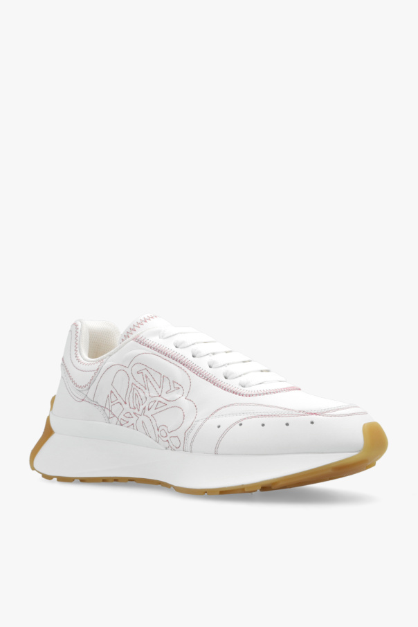 White ‘Sprint Runner’ sneakers from Alexander McQueen. Crafted from leather, this lace-up model sits on a beige and white rubber sole and showcases a tactile logo and pink stitching details.