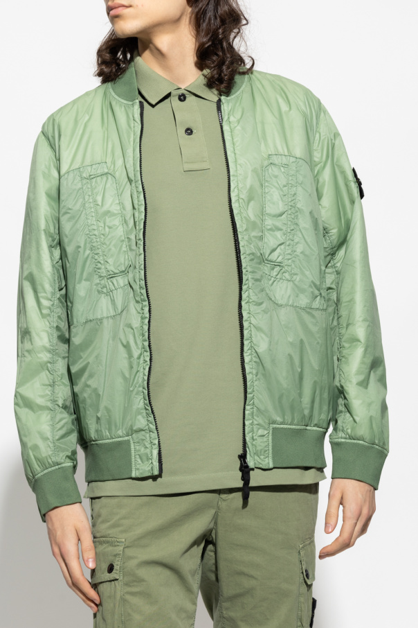 Green bomber jacket from Stone Island. Fastened with a two-way zip, this garment features a sleeve patch with a logo, two zip pockets, two snap-fastened pockets, PrimaLoft-TC insulation and ribbed edges.