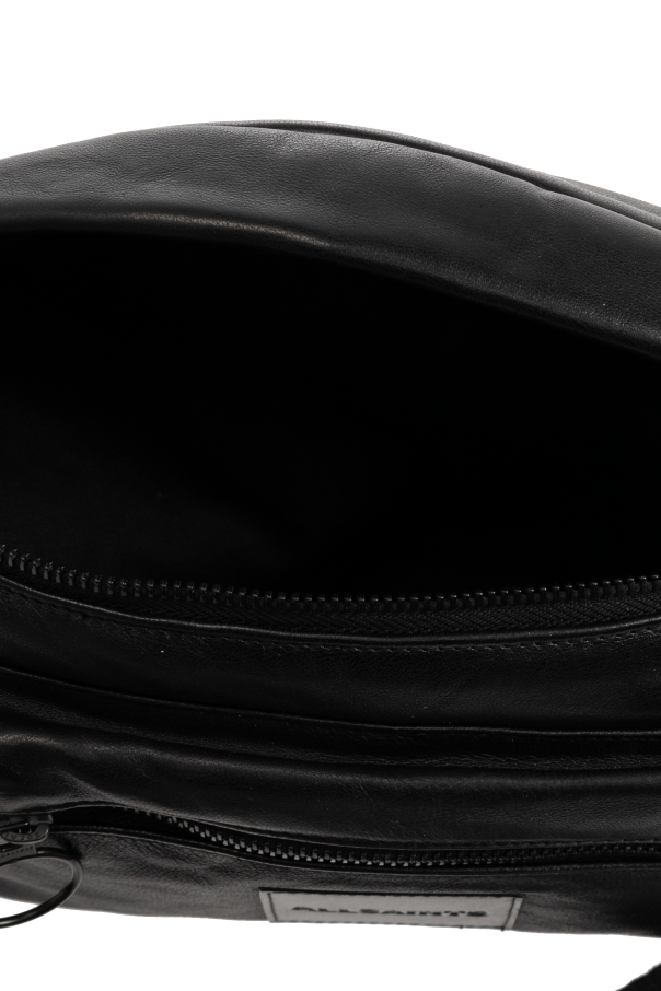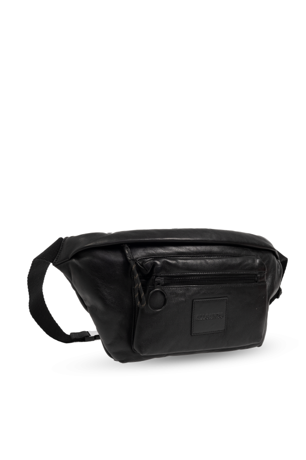 Black ‘Ronin’ belt bag from AllSaints. Made of leather, this design fastens with a zip and features a logo patch accompanied by a zip pocket on the front, an adjustable strap with a buckle and one internal compartment.