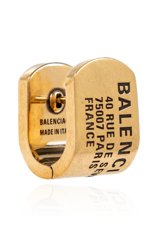 Introducing an exquisite addition to any discerning jewelry collection, the Balenciaga Brass Earrings exude sophistication and a timeless appeal. Crafted with meticulous attention to detail from 100% brass, these rectangular-shaped earrings with rounded corners gleam with a lustrous golden hue, elevating any ensemble with their metallic sheen. Each earring is intricately adorned with the iconic Balenciaga inscriptions and logo, including the esteemed "MADE IN ITALY" mark and the prestigious address "40 RUE DE SEVRES 75007 PARIS FRANCE". The brand's emblem, a stylized "B" encircled by two rings, is prominently featured, signifying the luxury and exclusivity of the piece. The design's elegance is matched by its heritage, reflecting Balenciaga's commitment to unparalleled craftsmanship and style. Worn, these earrings present a stunning display of opulence and design integrity, making them a coveted piece for those who appreciate luxury fashion. Why Purchase This Product? Elegance and Sophistication: Elevate your wardrobe with the timeless elegance of Balenciaga's design. Exquisite Craftsmanship: Enjoy the unparalleled quality of 100% brass, ensuring durability and a lasting shine. Iconic Branding: Show off your refined taste with the distinguished Balenciaga inscriptions and emblem. Luxury Statement: Make a bold statement with these striking earrings, perfect for any occasion that calls for a touch of glamour.