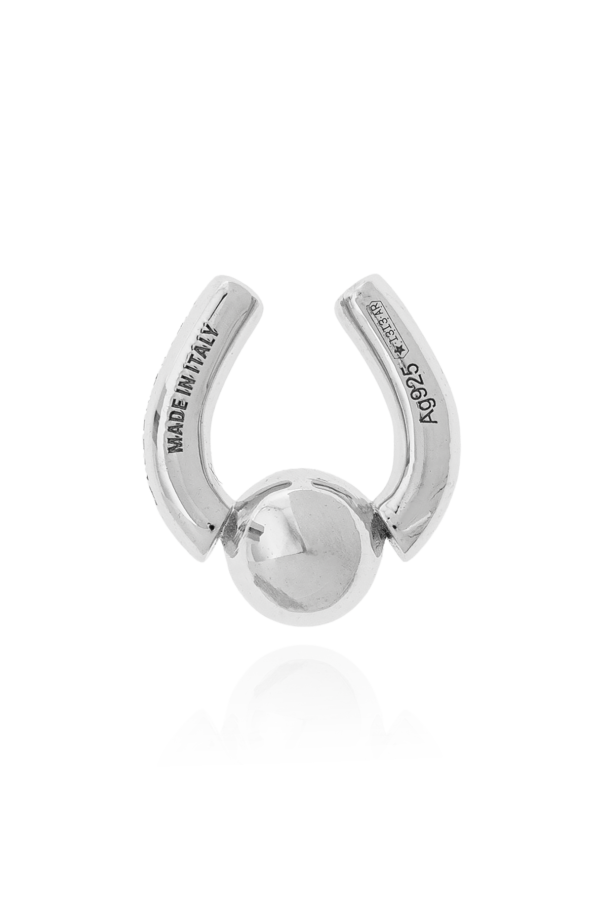 Introducing the epitome of minimalist elegance from the exclusive collection of Balenciaga. This unisex nose ring, crafted with precision, encapsulates the essence of modern sophistication. Its open ring shape, adorned with a central ball, resembles a delicate horseshoe, exuding an understated yet captivating charm. Fabricated from sterling silver, proudly stamped with "MADE IN ITALY" and "AG 925", this nose ring guarantees both authenticity and superior quality. Its sleek, silver finish ensures it complements any ensemble, making it an indispensable accessory for those who appreciate refined, yet bold fashion statements. Designed for the septum, this piece is suitable for both men and women, effortlessly blending into various styles while standing out as a statement of taste and elegance. Embrace the spirit of Balenciaga, a name synonymous with haute couture and visionary designs, and elevate your accessory collection with this modern masterpiece. Why You Should Buy This Product? Timeless Design: Simple yet striking, perfect for any outfit. High-Quality Material: Made from sterling silver, ensuring durability and elegance. Unisex Appeal: Suitable for both men and women, versatile in styling. Exclusivity: Part of Balenciaga's exclusive collection, embodying luxury and modernity.