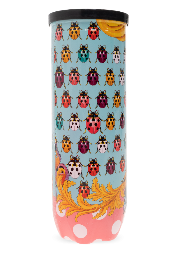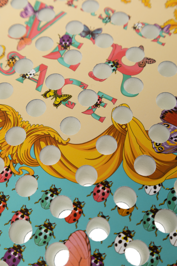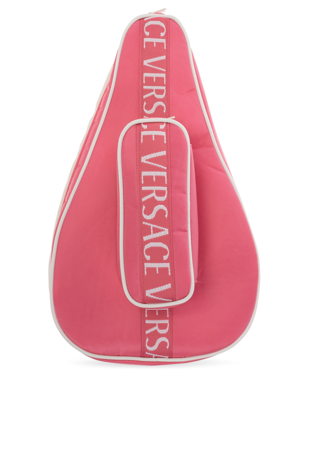Pink and white beach padel set with a multicolored Heritage Butterflies & Ladybugs print from Versace Home, ‘La Vacanza’ collection. Made of carbon. The set is detailed with rubber trims for a comfortable grip and comes with three playing rubber balls and a case with zip fastening and adjustable shoulder strap.