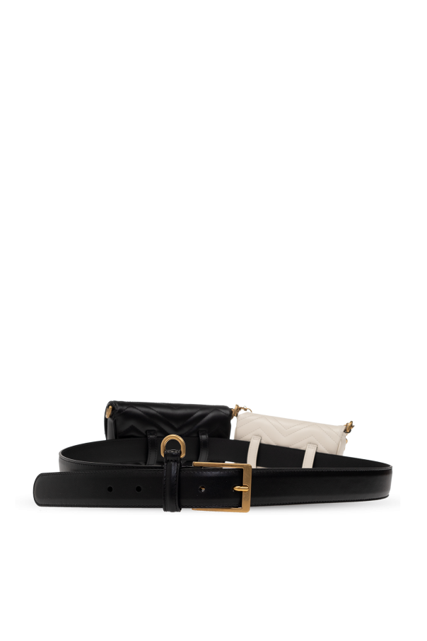 Two ‘GG Marmont’ quilted belt pouches in black and cream from Gucci. Made of leather, this design features magnetic snap fastenings, FF logo detail, adjustable belt and gold-tone metal hardware. The black pouch comes with a detachable and adjustable strap and has one internal compartment with two card slots. The cream pouch is complete with a detachable chain and has one internal compartment.