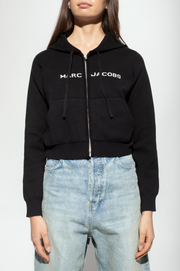 Black sweatshirt with a drawcord-adjustable hood from Marc Jacobs. Crafted from cotton with a cropped silhouette, this hoodie features a zip fastening, a white logo graphic on the front, two slip pockets and an elasticated bottom hem and cuffs.