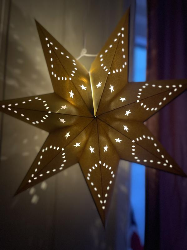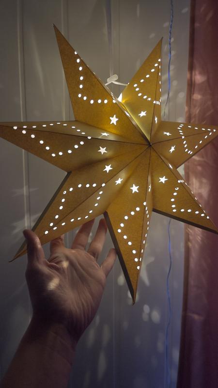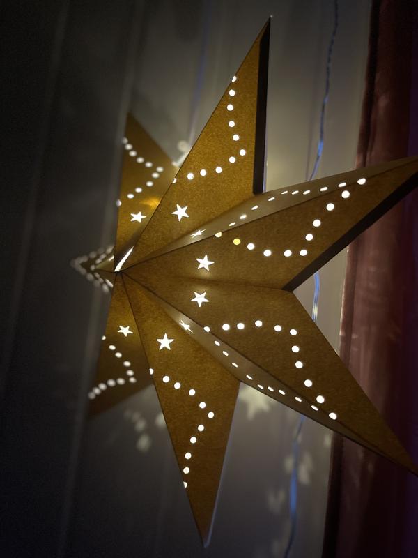 Увага! Біла зірка продана! 4 золоті в наявності. Дуже красива зірка з плотного спеціального золотого картону. Працює і світить від спеціального клапану, всередині якого є батарейки. Батарейки типу АА з штуки. Батарейки дарую від себе до зірки.Зірка багаторічна, не одноразова. Легко протримається тряпкою від пилу. В наявності -4 золоті. Поштучно -265грн , якщо забираєте всі 4- тоді 950грн. - за всі, плюс у кожній зірці буде йти свій комплект батарейок. Представлена при кімнатному світлі і без.