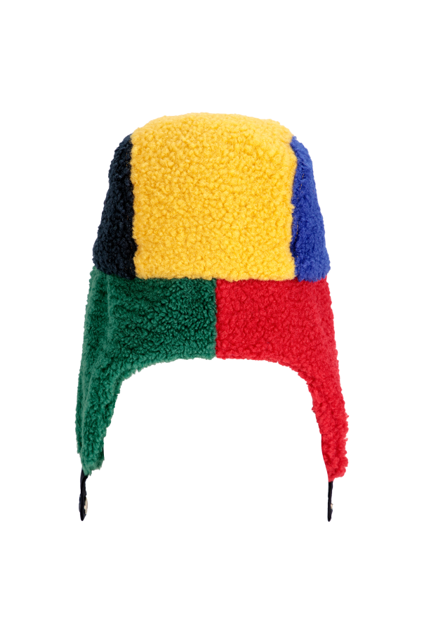 Introducing the Colorful Logo Cap from the exclusive collection of renowned children's fashion brand, Bobo Choses. This cap boasts a classic baseball shape with an added protective ear cover that can be fastened under the chin, ensuring warmth and comfort during chilly days. Crafted from a luxurious faux fur-like fabric, this winter cap is not only stylish but also offers exceptional insulation. The brim, made from a ribbed texture material, adds a touch of sophistication, while the multicolor design featuring blocks of yellow, red, green, blue, and navy ensures your child stands out in any crowd. Adorning the front is a white patch bearing the distinctive BOBO CHOSES logo, a mark of quality and prestige. The adjustable chin strap ensures a snug fit, providing superior protection against the cold. Why Choose This Product? Exclusive Design: Unique multicolor block pattern with a ribbed brim. Premium Materials: Made from soft, warm faux fur-like polyester. Functional and Stylish: Classic baseball cap shape with protective ear covers. Brand Recognition: Features the iconic BOBO CHOSES logo. Adjustable Fit: Chin strap for a secure and comfortable fit.