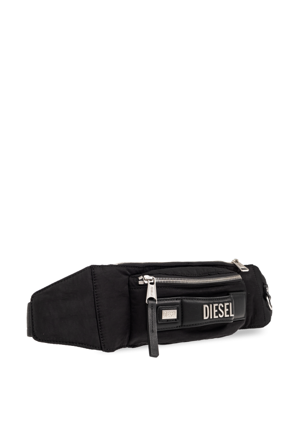 Black ‘LOGOS’ belt bag from Diesel. This design fastens via a zip and features a zip pocket accompanied by a handle with metal logo applications on the front, an adjustable strap, silver-tone metal hardware and one internal compartment.