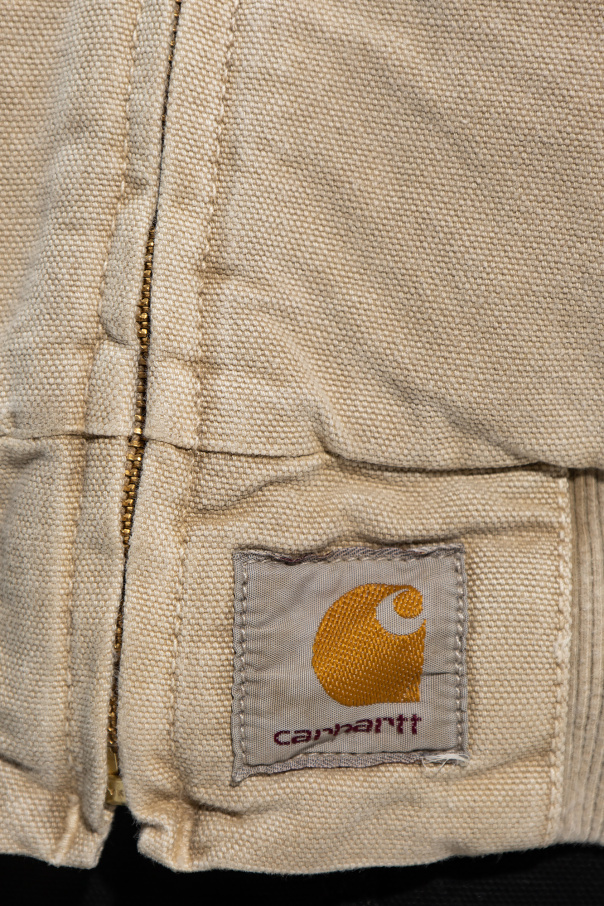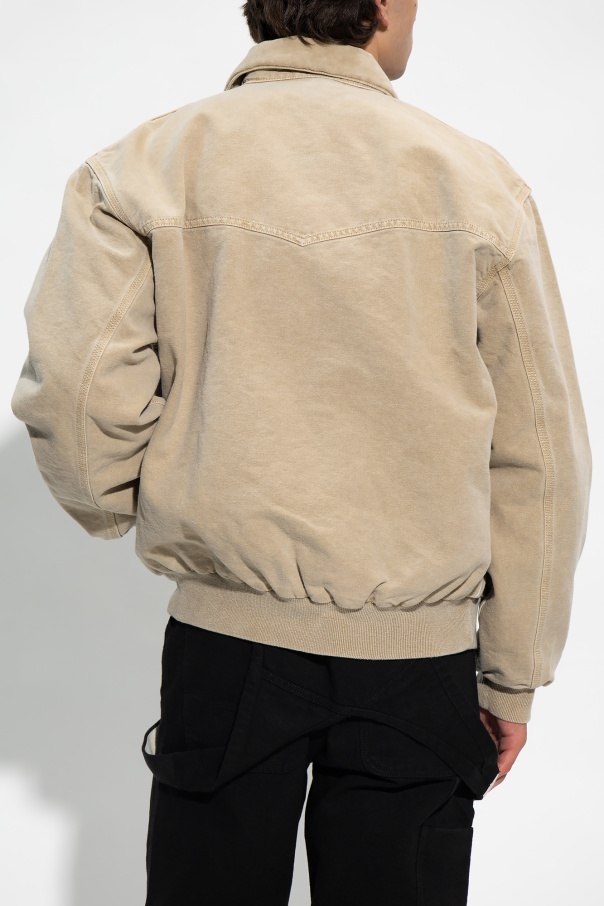 Beige ‘Santa Fe’ bomber jacket from Carhartt WIP. Fastened with a zip, this garment features a logo patch, collar, two slip pockets and ribbed trims at the hem and cuffs.