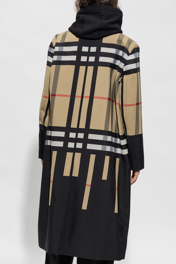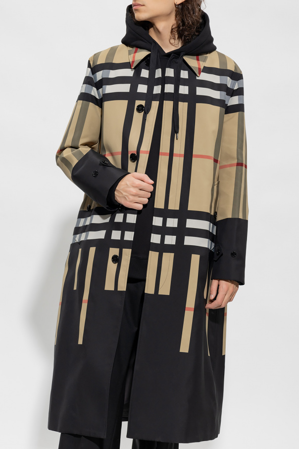 Multicoloured ‘Keats’ single-breasted coat from Burberry. Embellished with the brand's signature check pattern, this style features button fastenings with a concealed placket, two button pockets, a single back vent and long sleeves with adjustable cuffs.