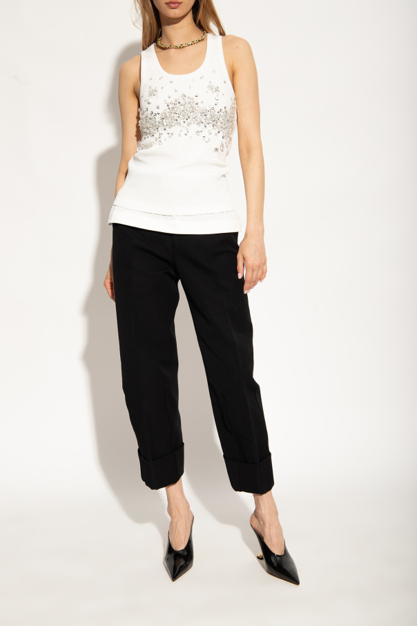Black ‘Rocket’ mules from Bottega Veneta. Crafted from patent leather with a pointed toe silhouette, this model sits on a beige leather sole with rubber applications to ensure better traction and features a curved heel.