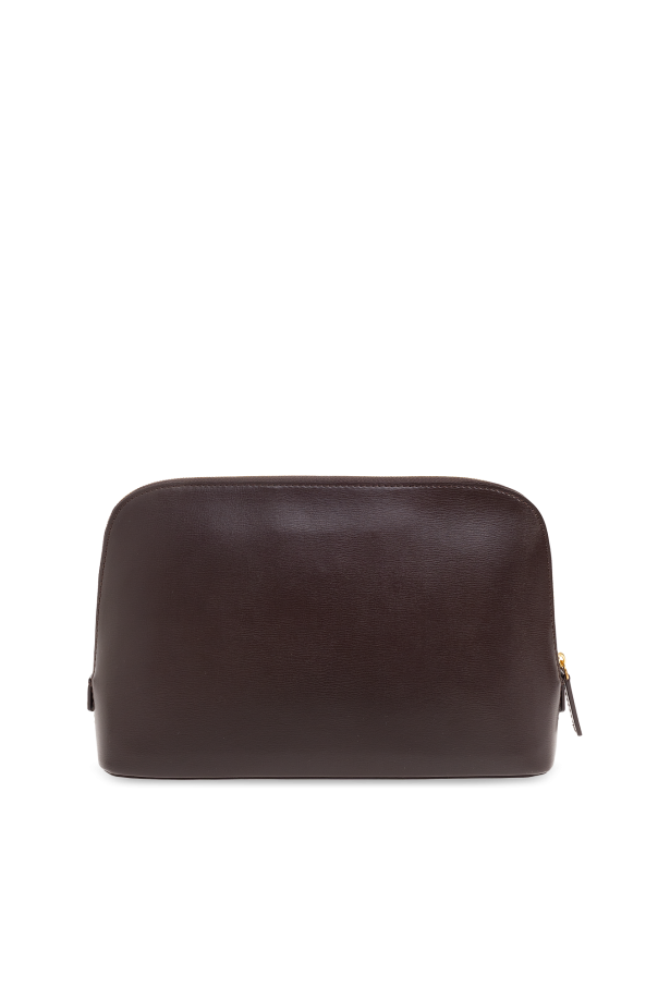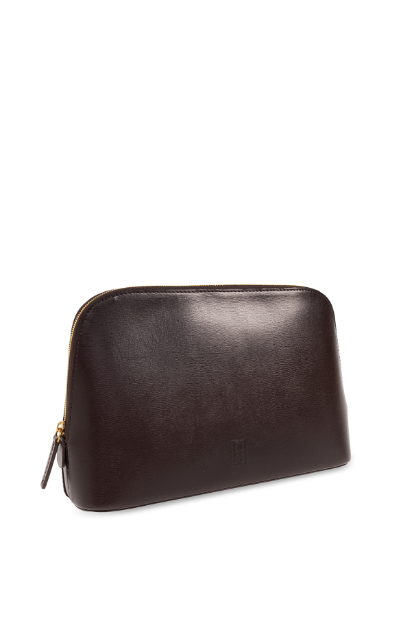 Brown ‘Aya Medium’ wash bag from By Malene Birger. Made of recycled leather, this design fastens via a zip and showcases an embossed logo on the front, gold-tone metal hardware and one internal compartment with two slip pockets.