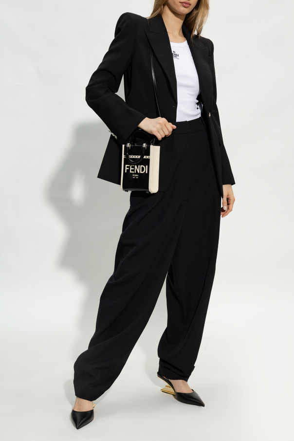 Black ‘Fendi First’ wedge slingback pumps from Fendi. Made of leather, this model sits on a beige leather sole with a rubber trims and features a slim toe and a diagonal F-shaped sculpted heel in gold-tone.