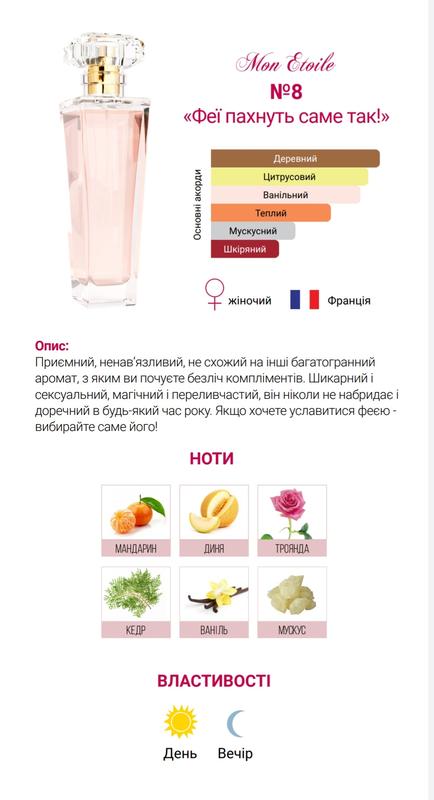 Приємний, ненав'язливий, не схожий на багатогранний аромат, з яким ви почуєте безліч компліментів. Шикарний та сексуальний, магічний та переливчастий, він ніколи не набридає і доречний у будь-яку пору року. Якщо хочете уславитися феєю - вибирайте саме його!