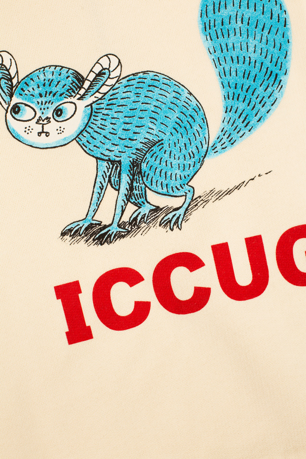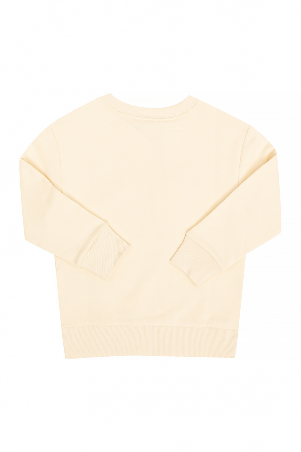 Light beige crewneck sweatshirt from Gucci Kids. Crafted from cotton jersey, this style showcases a red graphic print with the brand's logo and ribbed trims on the edges.
