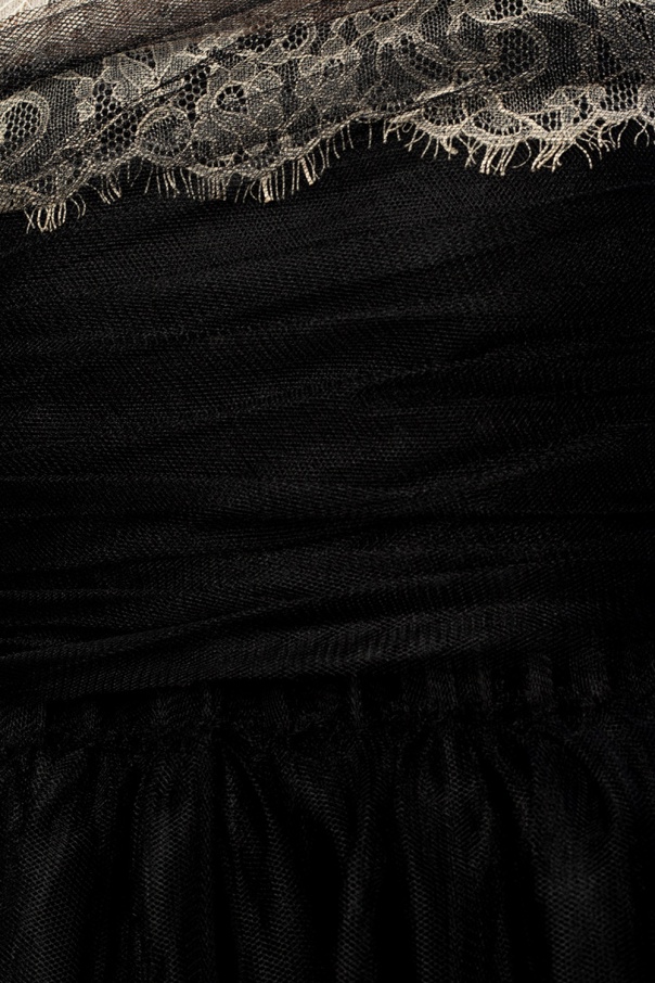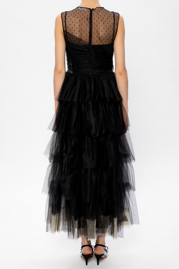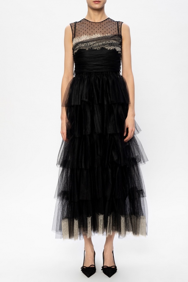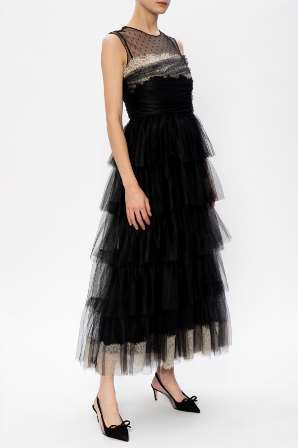 Black transparent dress from Red Valentino. Fastened at the back with a zip, this flared design is enriched with openwork trims in white.