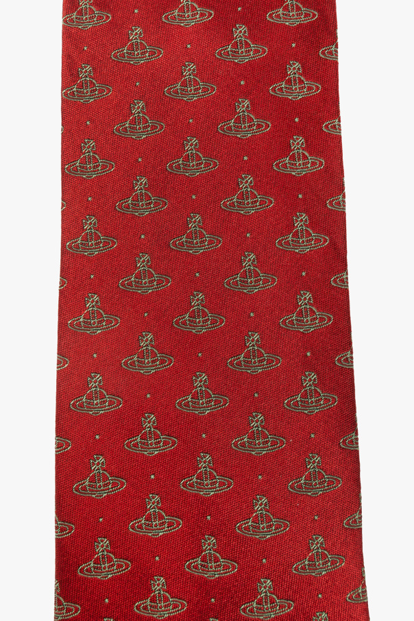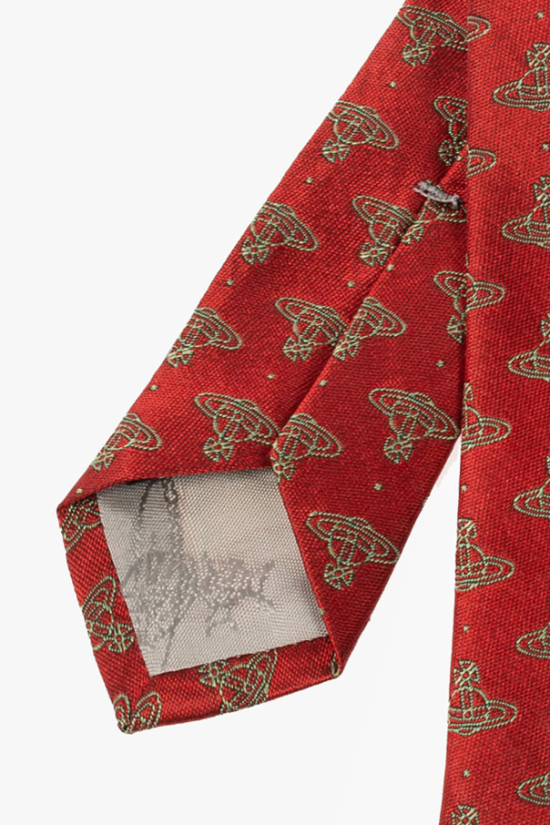 Red tie from Vivienne Westwood. Made of silk, this item is embroidered with a green logo pattern.