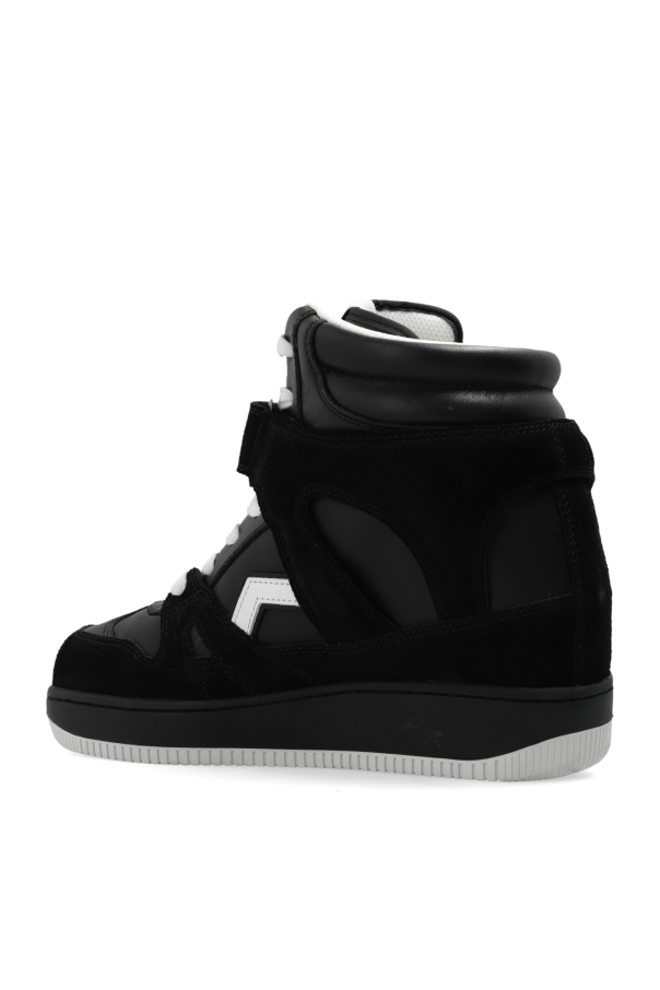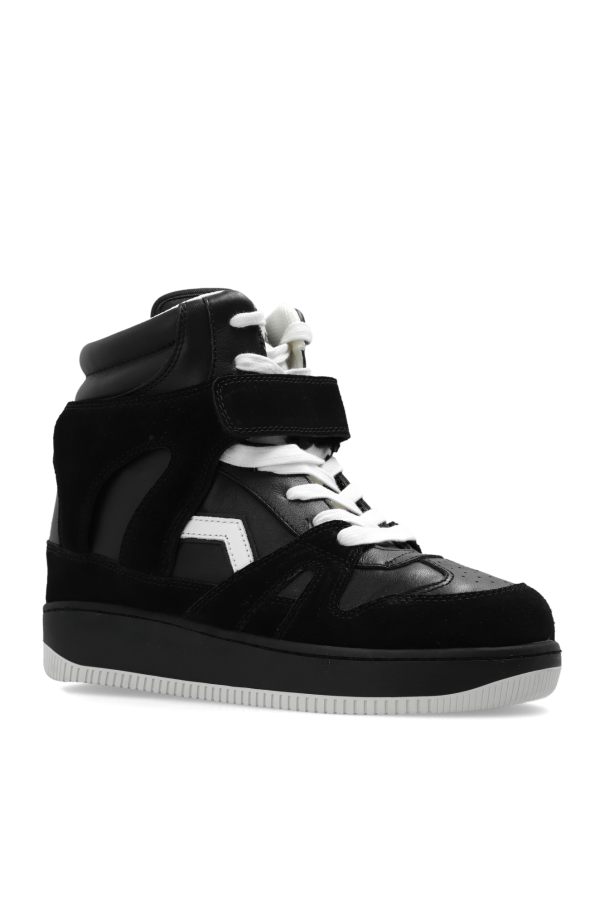 Black and white ‘Oney’ high-top sneakers from Isabel Marant. Made from suede and smooth leather, this lace-up model sits on a white and black rubber sole and features a white logo patch, additional velcro closures and an embossed logo.