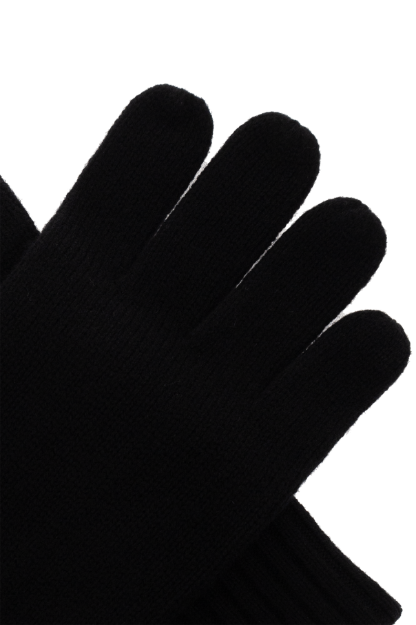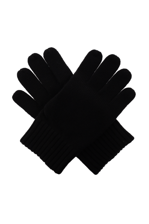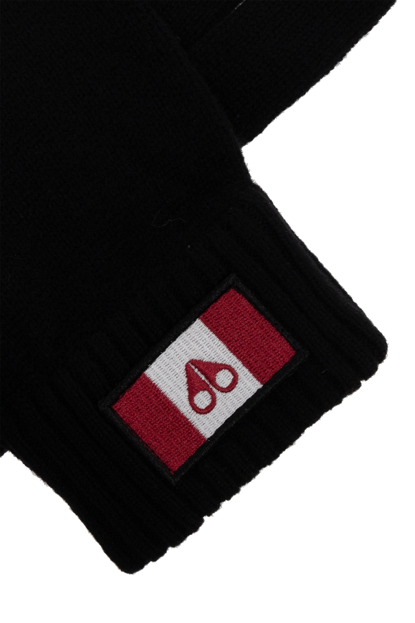 Black gloves from Moose Knuckles. Made of cotton, this pair features a red and white logo patch and ribbed cuffs.