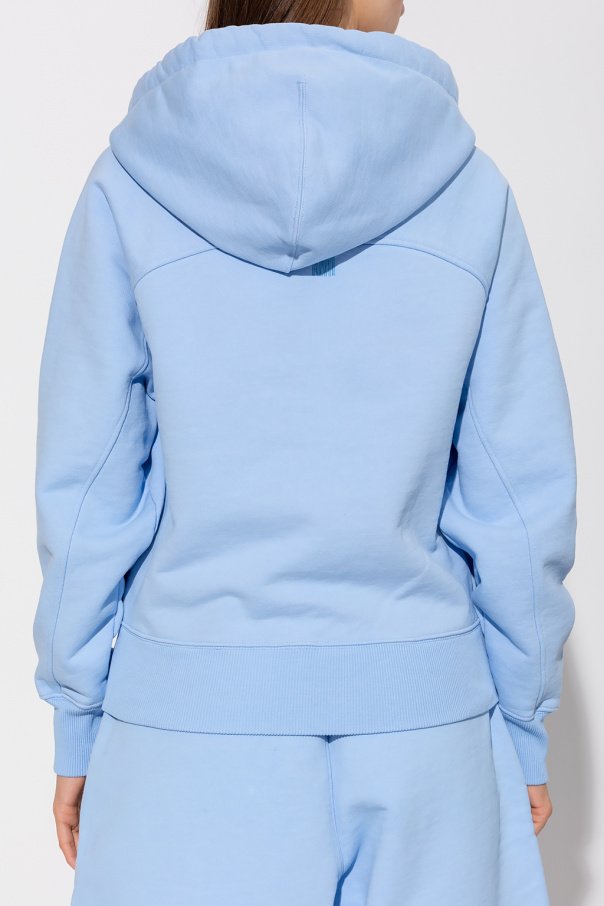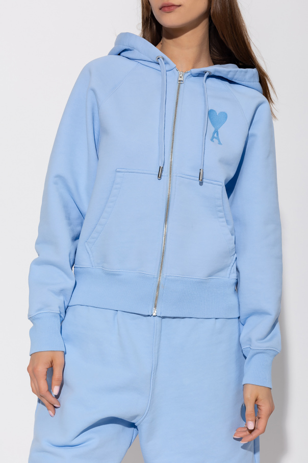 Light blue sweatshirt with a drawcord-adjustable hood from Ami Alexandre Mattiussi. Crafted from organic cotton with the GOTS certificate, this style features Ami de Coeur embroidery on the front, a zip fastening, two slip pockets, raglan sleeves and a ribbed bottom hem and cuffs.