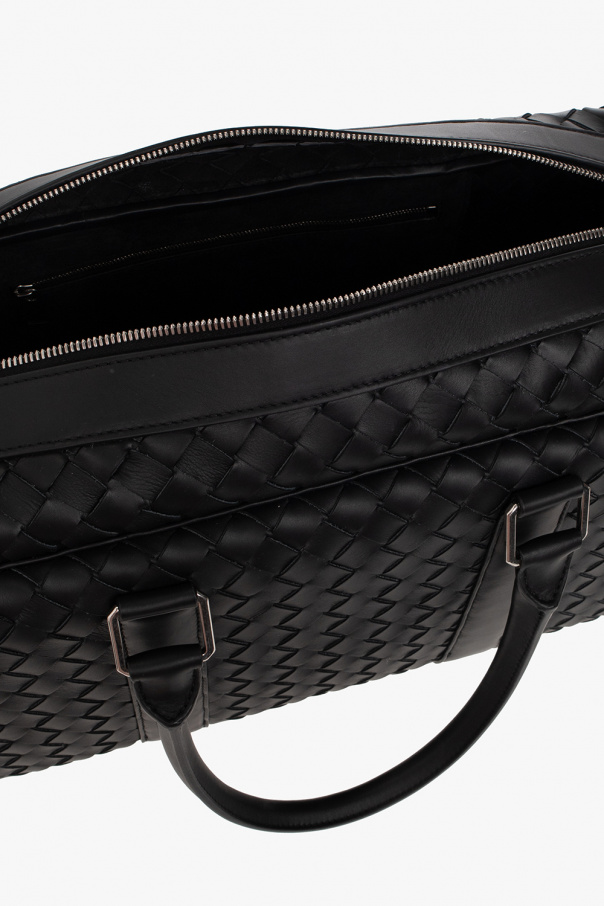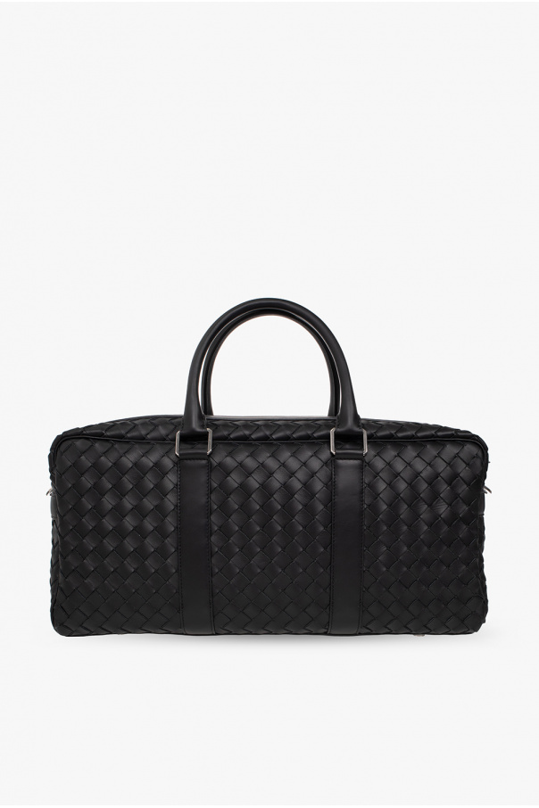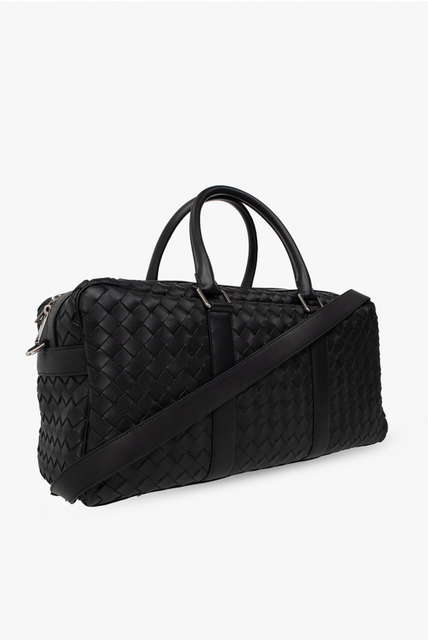Black ‘Classic Hidrology Medium’ duffel bag from Bottega Veneta. Crafted from calf leather accentuated with the brand's signature Intrecciato weave, this design features a two-way zip fastening, two half-round handles, a detachable and adjustable shoulder strap, silver-tone metal hardware and one inetrnal compartment with one slip pocket and one zip pocket.
