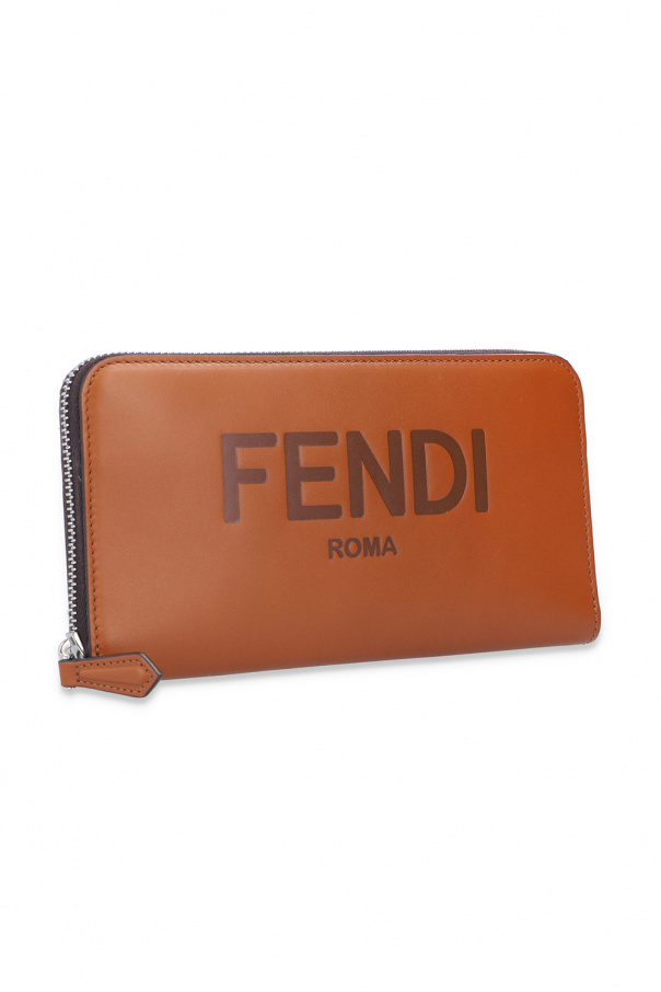 Brown wallet from Fendi. Crafted from calf leather, this item secures with a zip-around fastening and features an embossed logo on the front and a black calf leather-clad interior with two bill compartments, one zipped coin pocket, two slip pockets and twelve card slots.