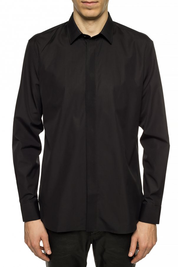 Black shirt from Saint Laurent. Made of cotton. Fastened with buttons with a ribbed concealed placket.