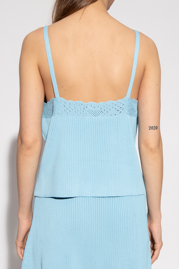 Light blue ribbed tank top with a V-neck and cut-out pattern from Balenciaga.