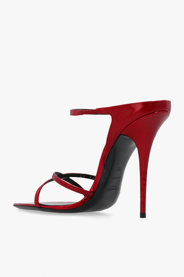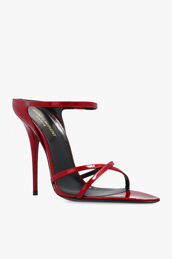 Red ‘Gippy’ heeled mules from Saint Laurent. Made of leather, this pair rests on a black leather sole.