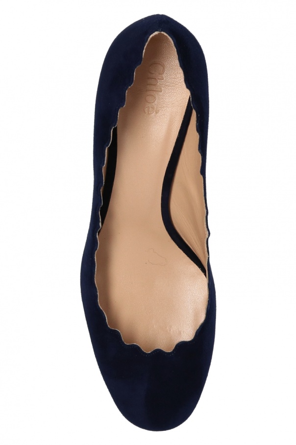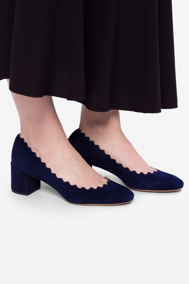 Navy ‘Lauren’ pumps from Chloé. Crafted from suede, this design features a scalloped trim, round toe and brown leather sole.