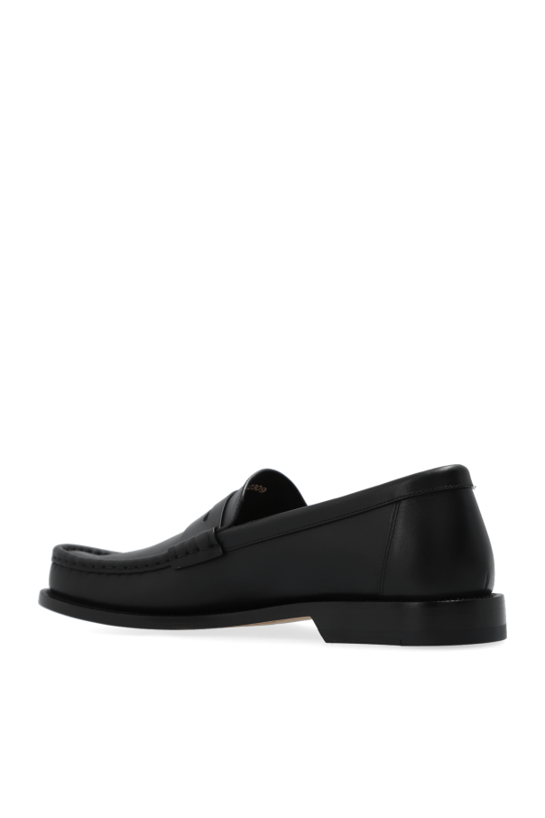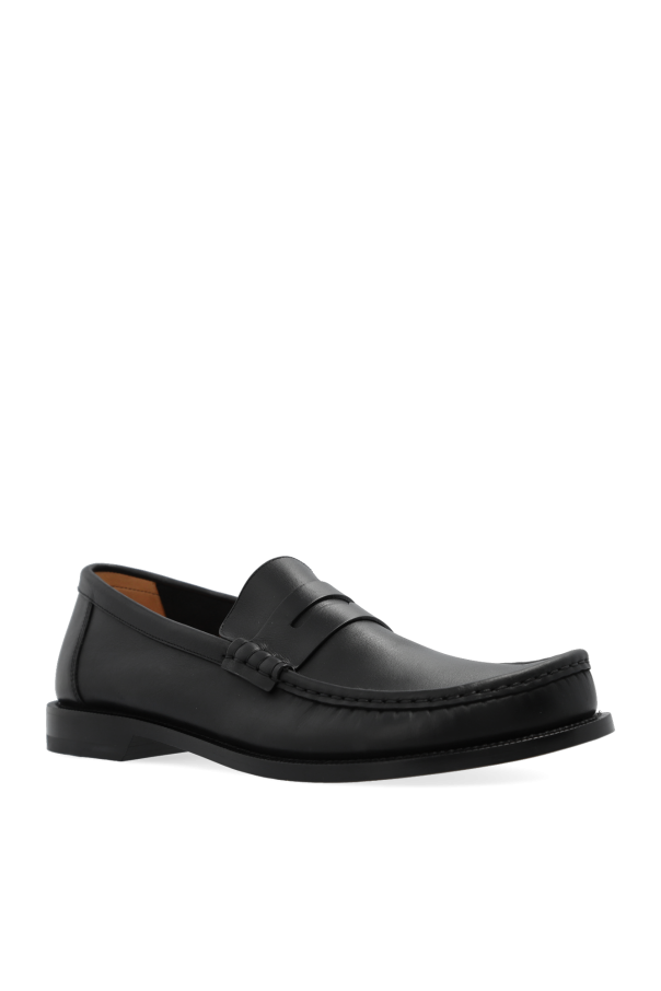 Black ‘Campo’ loafers from Loewe. Made from leather, this model sits on a beige leather sole and features a cut-out strap on the front.