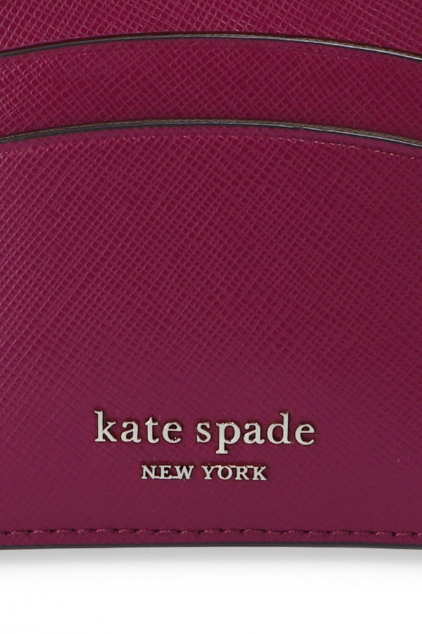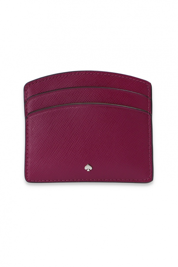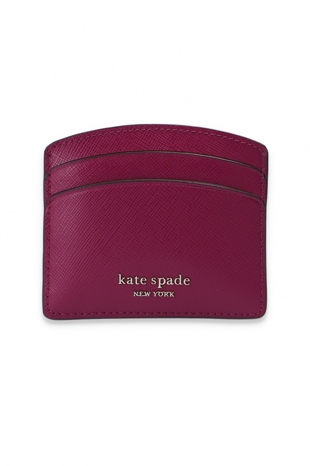 Purple 'Spencer' card case from Kate Spade. Crafted from leather, this accessory showcases silver-tone metal logo plaque and five card slots.