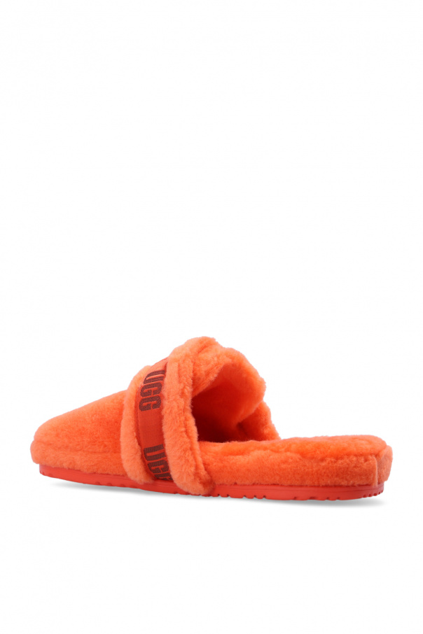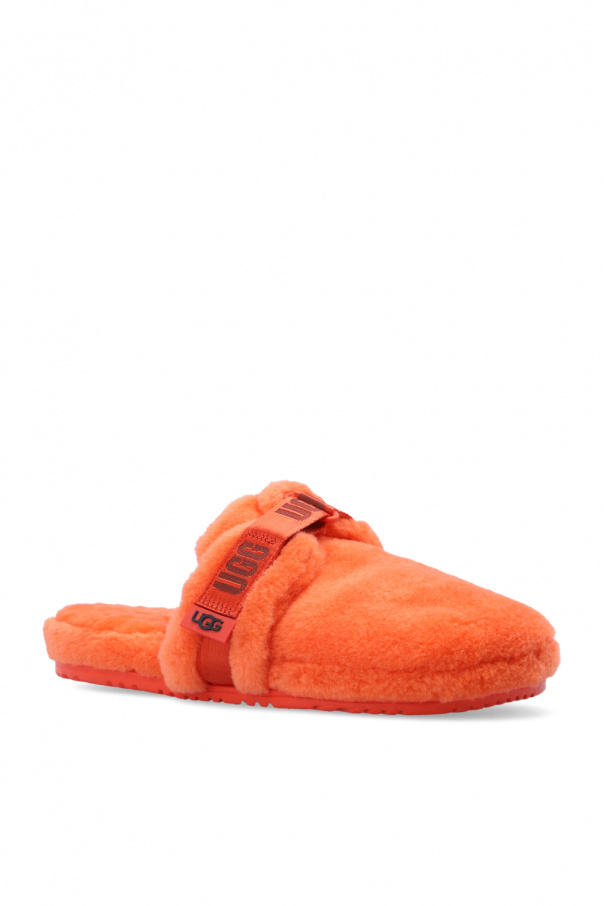 Orange ‘M Fluff It’ slides from UGG. Made of UGGplush™ material patented by UGG, this pair features velcro straps, a logo embroidery, EVA foam midsole and orange rubber Treadlite outsole ensuring comfort.
