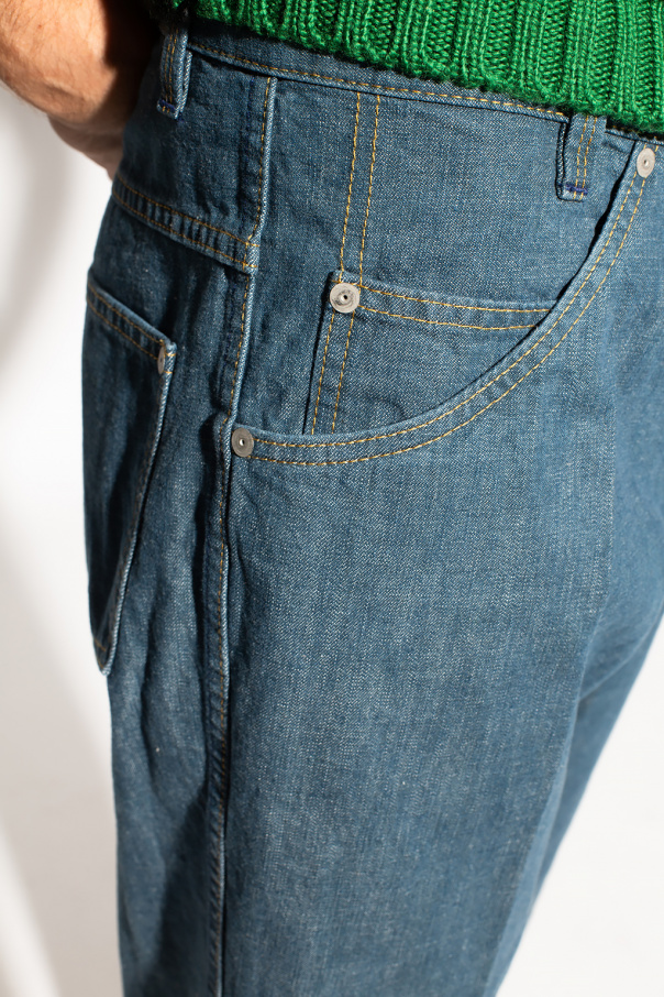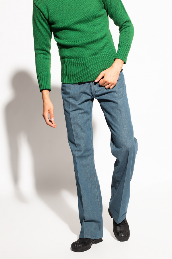 Blue jeans from Maison Margiela. Crafted from cotton, this pair falls down with tapered legs and features a zip fly with a button and classic five pockets.