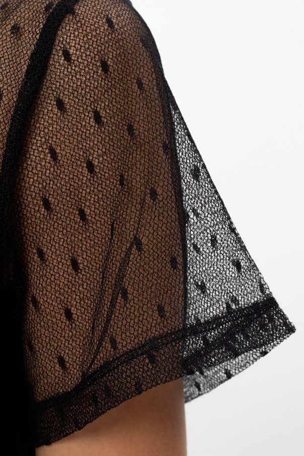 Black sheer top from Red Valentino. Designed with black pattern throughout, this item has round neck and short sleeves.