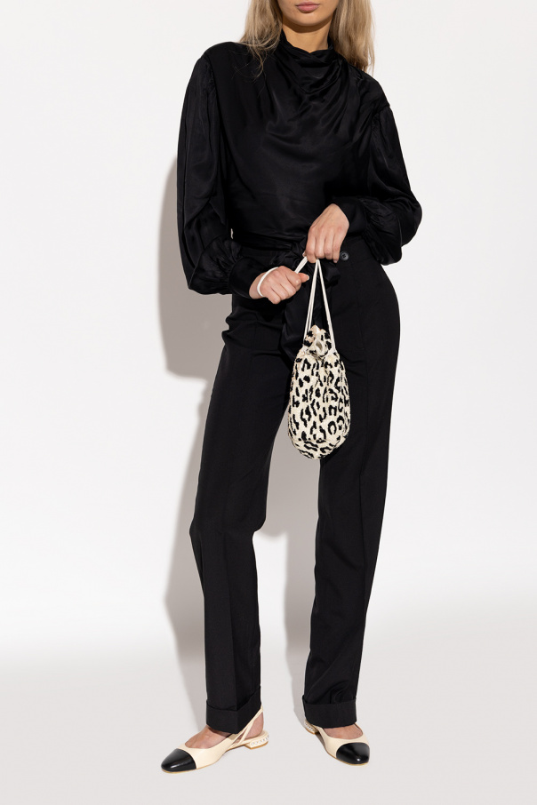 Cream and black ‘Pearl Slingback’ pumps from Stuart Weitzman. Crafted from leather, this model sits on a beige rubber sole and features an elastic slingback strap, cutout detailing and a low heel accentuated with the brand's signature white fake pearls.