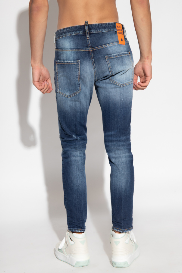 Blue ‘Skater’ distressed jeans from Dsquared2, the ‘One Life One Planet’ collection. Fastened with buttons, this pair features three front pockets, two back pockets and cropped, tapered legs.