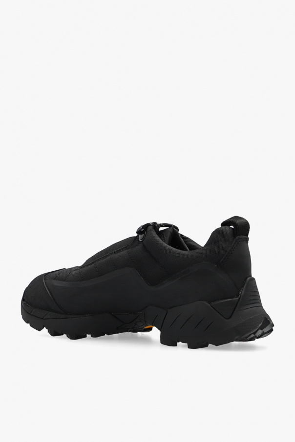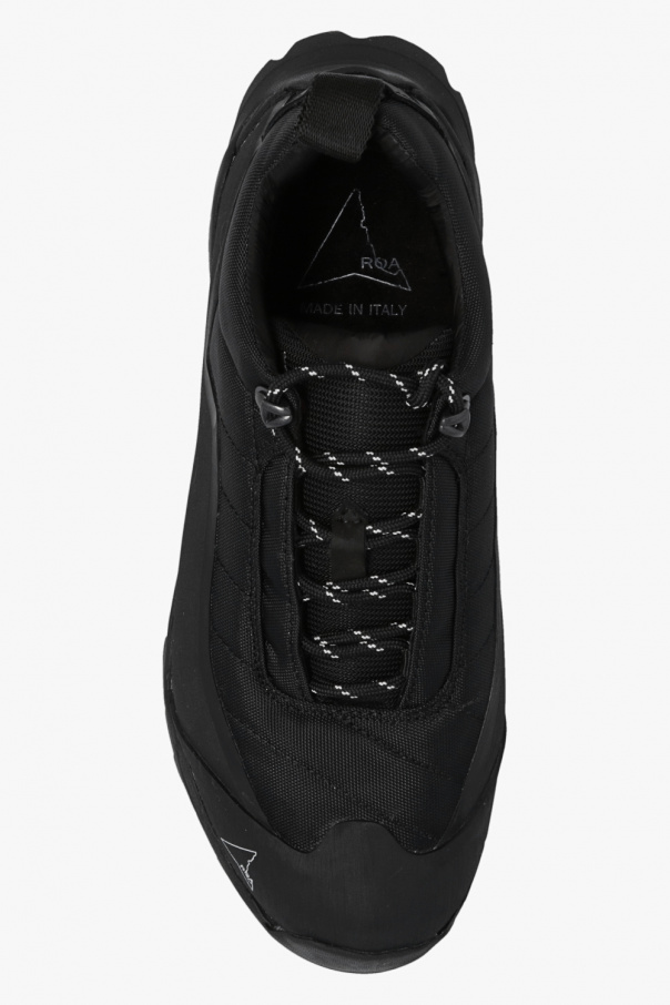 Black ‘Katharina’ trekking boots from Roa. Crafted from durable technical nylon material, this model features lace-up fastenings, rubber details, a printed logo and a black Vibram Megagrip toothed tread pattern sole designed for optimal traction and to ensure high resistance to use on roughest surfaces.