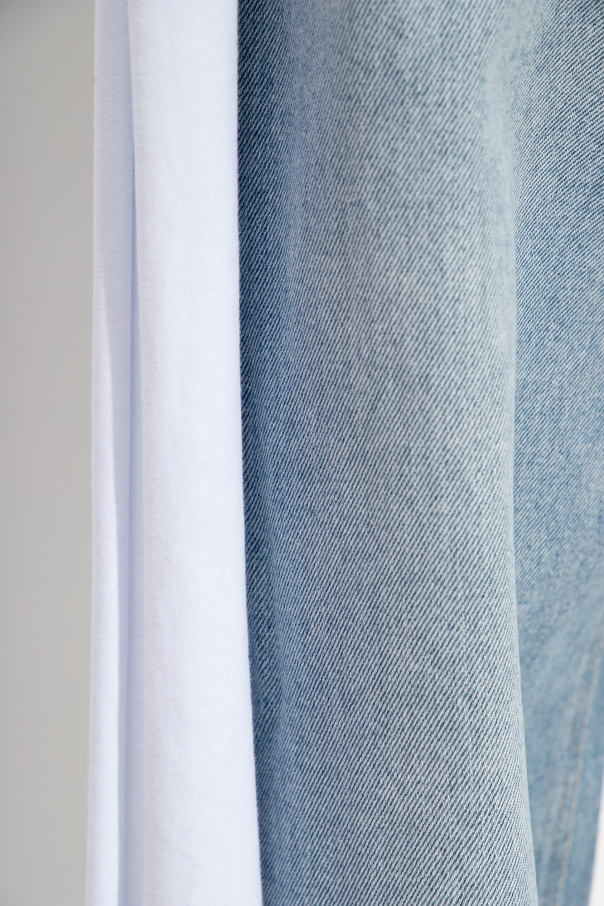 Light blue ‘D-SIRE-WORK-S1’ jeans from Diesel. Fastened with buttons, this low rise pair features two front and back pockets and straight, wide legs with two-layered fabric side stripes in white.
