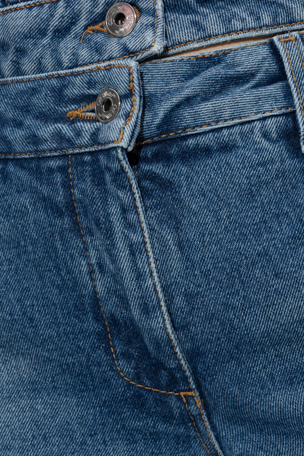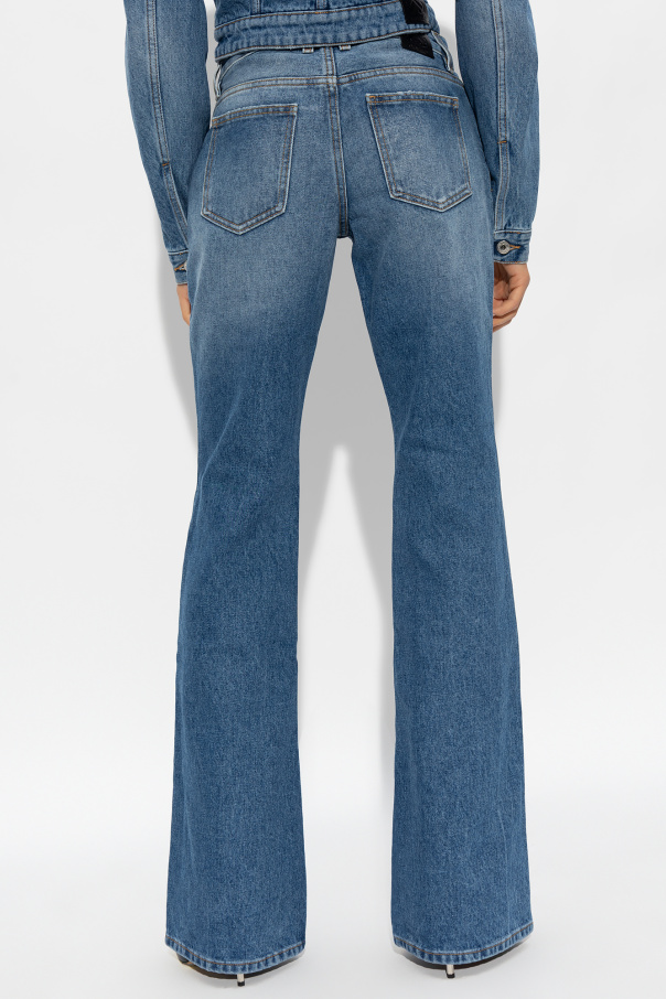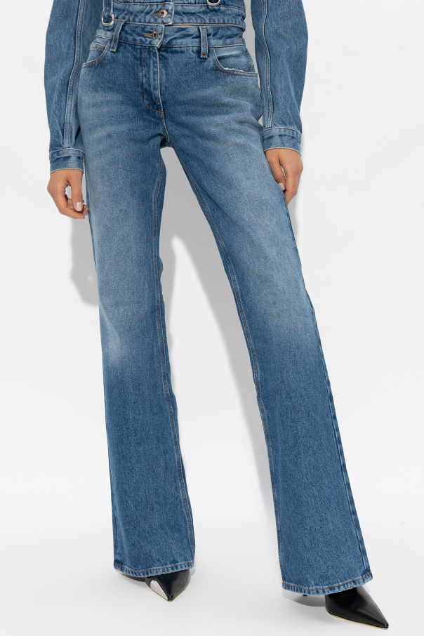 Blue jeans from Off-White. Falling with flared legs, this pair features a zip fly with a button, classic five pockets and a black patch with an embossed logo at the back.