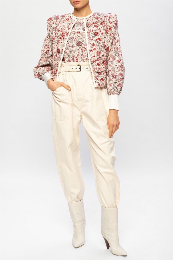 Cream and white vest from Isabel Marant. Illustrated with a floral print, this premium quality garment employs hook fastenings and two slip pockets.