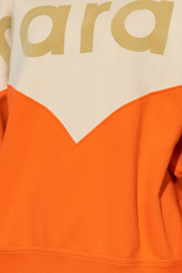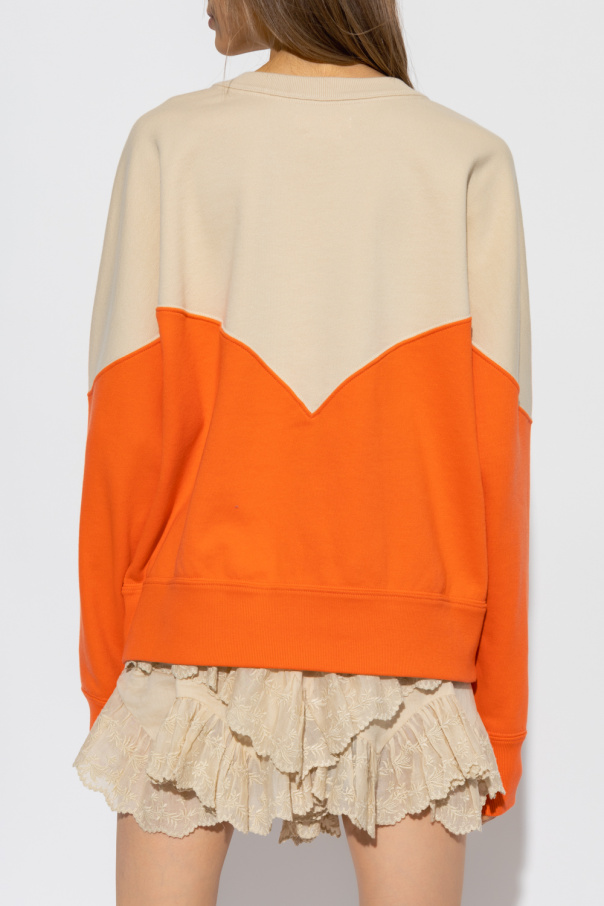Beige and orange ‘Houston’ crewneck sweatshirt from Isabel Marant Étoile. This garment is enriched by a logo detail with a velvet finish and ribbed trims at the hem and cuffs.